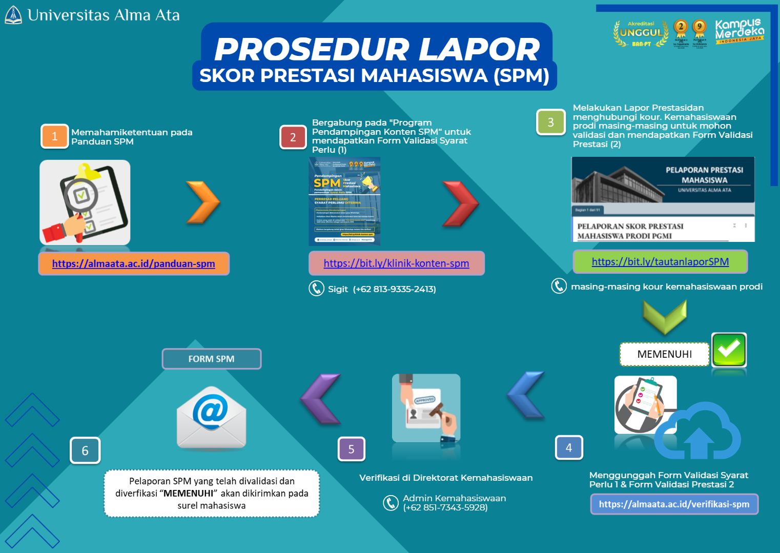 Penting! Bagi mahasiswa yang memiliki prestasi dan ingin mengajukan poin SPM, silakan perhatikan infografis Alur Lapor Skor Prestasi Mahasiswa (SPM) berikut ini. Mulai dari memahami panduan hingga verifikasi akhir, semua langkah sudah terangkum jelas di sini. Jangan lupa simpan link-link penting yang tertera, ya!